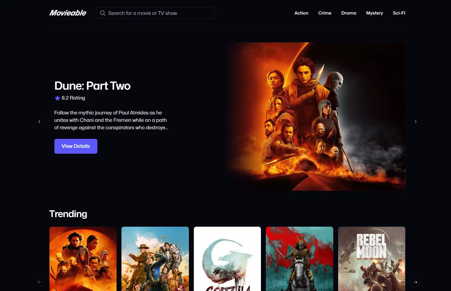A movie search engine granting access to a vast database of movies across multiple genres, complete with detailed information for each film to help you choose your next watch.